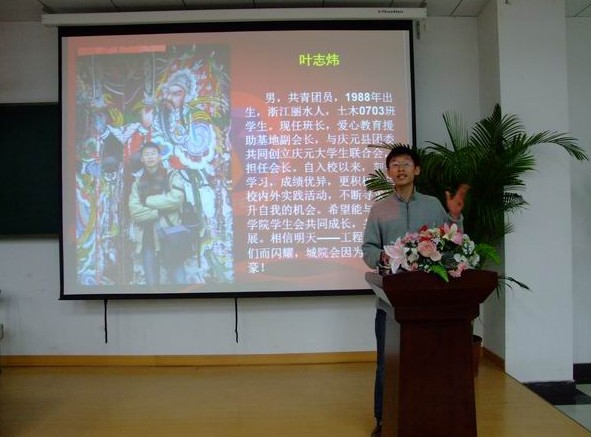 大一下学期,分院团委学生会部长主席团竞选,我报名参加竞选学生会副主席,并成了主席团的候选人,当时我是资历最小的学生会成员,只是一个初入大学的新生,其他的主席团候选人都是在学生会有相当工作经验的部长副部长。那个时侯同学,学长甚至老师都认为我是不可能竞选成功的,记得有个学长对我说:“叶志炜,你呢先去选个部长当当就好了,如果能竞选上部长已经是很不错了。”在竞选前几天学工办老师也找我谈话,意思是让我把目标定位在部长的竞选上,我知道老师是出于爱护我,怕我遭受失败的打击。