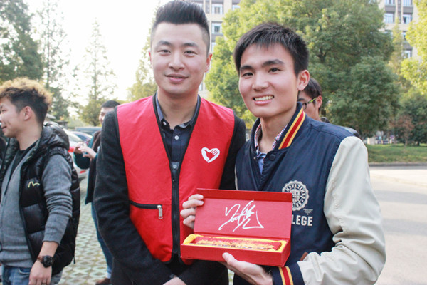 11月18日下午,由浙江省教育厅、浙江省卫生计生委、浙江省血液中心联合主办的“阳光正能量青春High起来——2014高校感恩月无偿献血活动启动仪式”在浙江工商大学举行。这是浙江省政府第7次在杭各大高校开展感恩无偿献血活动。仪式上,一辆装饰一新的神秘流动献血车揭开了“面纱”。这是为高校大学生特别设计的献血车新车体,以17所高校大学生献血者代表为背景,宣传大学生无偿献血,展示大学生热血助人的青春风采。bt365博彩机电1301班的王奇明赫然在列。