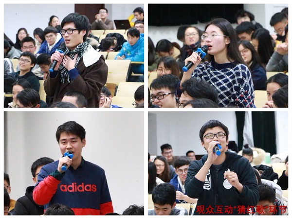 第二个环节是为观众准备的“猜红歌歌名”。伴随着经典红歌歌声响起,现场气氛瞬间点燃,同学们都情不自禁地随着歌声跟唱起来,更有同学在歌曲尚在前奏部分时便已迫不及待的高举手臂想要答题。“心心向党队”的支持观众在次轮表现非常抢眼,为所属队伍赢得了宝贵的10分。
