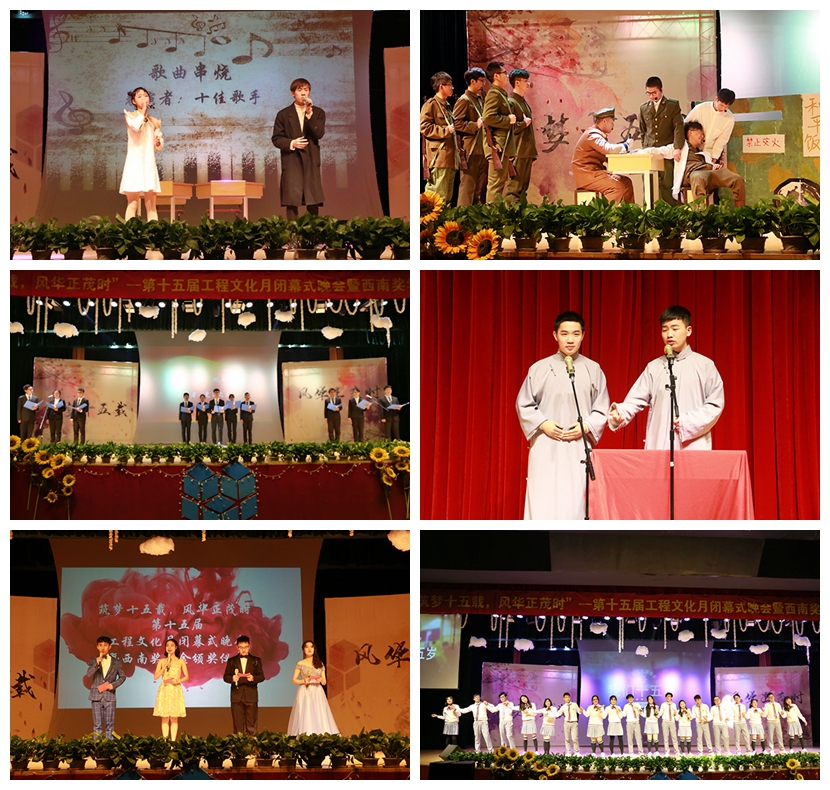 2017年12月23日星期六晚18:30,以“筑梦十五载,风华正茂时”为主题的第十五届工程文化月闭幕式晚会暨西南奖学金颁奖典礼在图信报告厅隆重举行。杭州市西南建设工程检测有限公司副总经理应志杰先生、副总经理祝世昌先生、工程学院党委书记谷波权老师、工程学工办老师、各分院学生会主席、历届团委学生会主席团及部长团成员出席了本次晚会,与现场六百余名观众共同度过了一个难忘的夜晚。